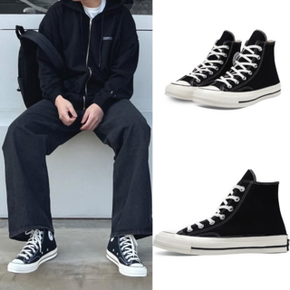 [백화점매장판]컨버스 Converse 공용 스니커즈 척70 클래식 하이 척테일러 BK 1970s 캔버스화 블랙 + 고무 신발끈