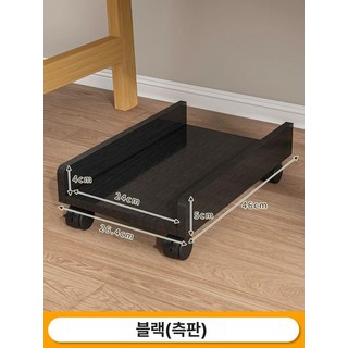 원목 PC 본체받침대 컴퓨터 이동식 선반 사무용, 블랙-측면판-바퀴형