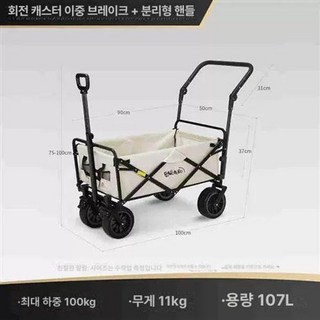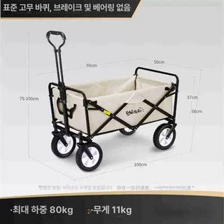 캠핑용 핸드 카트 접이식 폴딩 손수레 코드리빙, 1개, 오프로드 베어링 더블 브레이크 베이지색 분리형