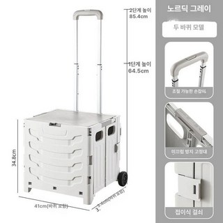 다용도 쇼핑카트 8바퀴 접이식 보라색 휴대용 보라색, 1개, 북유럽 그레이 50L 2바퀴