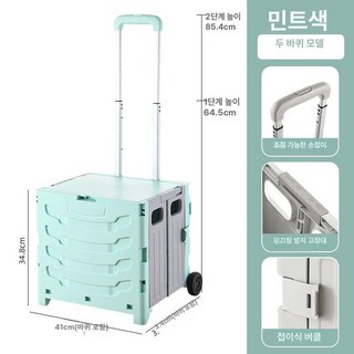 다용도 쇼핑카트 8바퀴 접이식 보라색 휴대용 보라색, 1개, 민트그린 50L 2바퀴