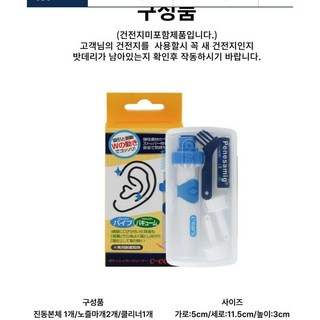 국내산 귀클리너 전동식 진공 귀청소기 흡입식 귀이개 노즐포함 건전지포함, 1개입, 1개
