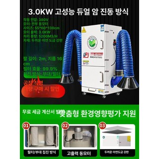 산업용 집진기 목공 먼지 분진 청소기 공장 흡입기, 기본 색상, 고급형 3KW 이중암 진동
