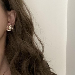 영블리 E372 진주 포인트 까멜리아 동백꽃 귀걸이
