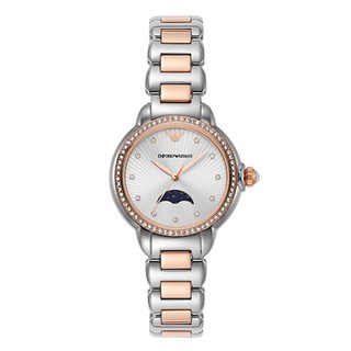 엠포리오아르마니 여성용 Mia 쿼츠 콤비 문페이즈 메탈 시계 AR11567