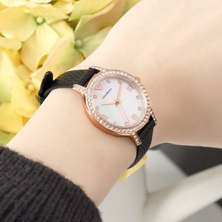 알마니 로즈골드 큐빅 라운드 데일리 정장 캐주얼 여자 블랙 가죽시계