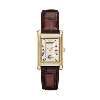 Emporio Armani 스테인리스 스틸 또는 가죽 밴드가 있는 남성용 직사각형 시계 드레스 골드/블랙. 지노 91276, Gold/Brown