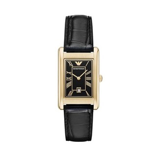 Emporio Armani 스테인리스 스틸 또는 가죽 밴드가 있는 남성용 직사각형 시계 드레스 골드/블랙. 지노 91276, Gold/Black