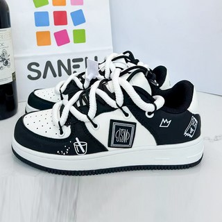 빛나는 판다커플 신발 봄여름 패션 두꺼운 바닥 경량 캐주얼 신발 야외 일상 트렌드 통기성 레이스업 스니커즈