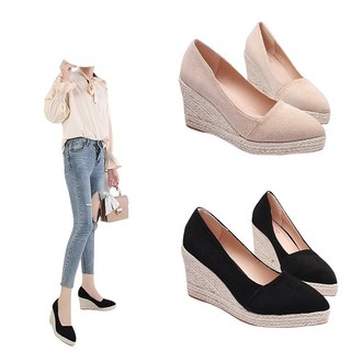 발자취 여성 웨지 단화 펌프스 힐 컴포트 통굽 샌들 스웨이드 힐 플랫폼 슈즈