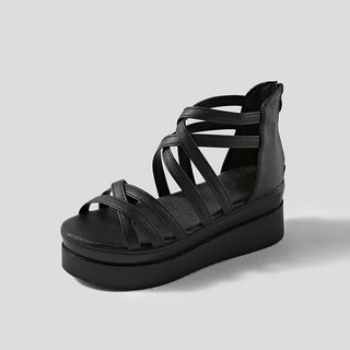 DarjinQD 여성 가죽 통굽 샌들 통굽 7cm 발편한 키높이 스트랩 샌들 여름 샌들 샌달 구두LX-888