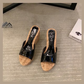 POMTOR 여성 여름 통굽 웨지 힐 슬리퍼 샌들 웨지 샌들힐 하이힐 통굽신발