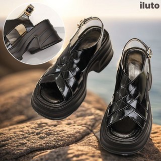 일루토 키높이 통굽 크로스 가죽 샌들