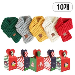 KC인증 어린이 크리스마스 선물 (10종세트) 쁘띠 목도리 10개+선물상자 10개+타투스티커 10장 뜨개 니트 머플러 유치원 어린이집 여아 남아 단체 행사 유아 아동 성탄절 답례품
