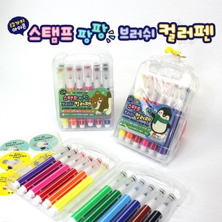 [날쌘거북이] 어린이집 유치원 생일선물 답례품 도장찍기 12색 스탬프 팡팡 브러쉬 컬러 싸인펜 [리본끈 완포장+스티커2종 증정]