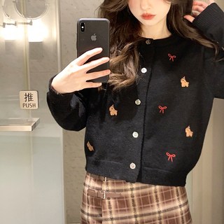 besteffie 클래식 여성용 꽃무늬 자수레터링 포인트 라운드넥 니트 가디건 봄 가을 겨울 긴팔 카디건 K18
