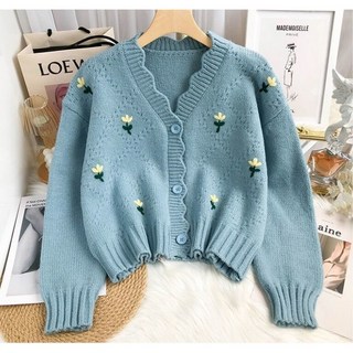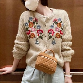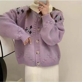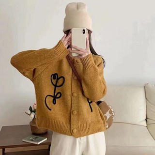 꽃 자수 카디건 여성 루즈핏 라운드 니트 6R717