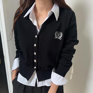 티티웍스 간절기 라운드넥 리본 자수 긴팔 가디건