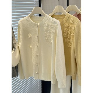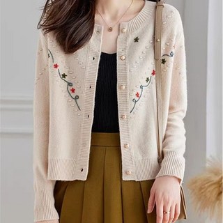 해피유통 여성용 진주 버튼 자수 니트 가디건 봄 가을 우아한 스타일zjm
