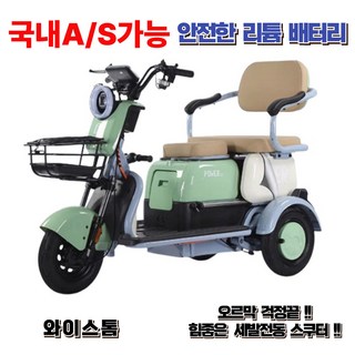 와이스톰 강력한힘 여성 노인 3륜 세발 전기오토바이 전동스쿠터 2인용 3인용 출퇴근, 그린, 경량스틸