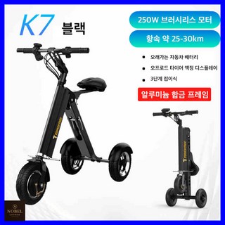 노벨라운지 접이식 세발전기자전거 삼륜 전기바이크 전동 출퇴근자전거 팻바이크 배달 자토바이, 블랙, 알루미늄