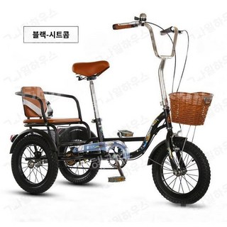 성인용 세발 자전거 중년 삼륜 바구니 어른용 어르신, 3. 14인치 검정색 좌석