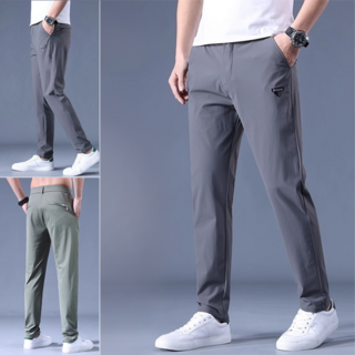 남자 여름 얇은 긴바지 와이드 일자 아이스 통풍 속바지 밴딩 허리 캐주얼 팬츠 여름바지 일자 팬츠 날씬해 보이다 앞주머니에 비스듬히 꽂다