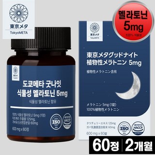 도쿄메타 굿나잇 식물성 멜라토닌 5mg 60정 고함량 가바 테아닌 허브3종 타트체리 추출물 세로토닌 멜라토닌 영양제, 1개
