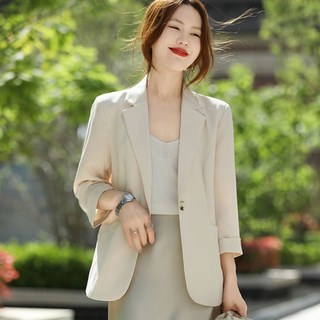 여름 얇은 린넨 여성 캐주얼 정장 재킷 루즈핏 시원한 세미정장 날씬해 보이는 슬림핏 자외선 차단 9부 소매 상의