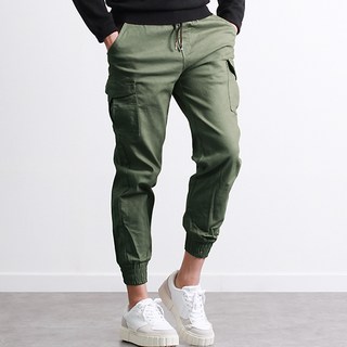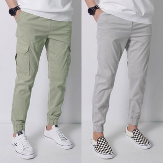 [투뎃] 남성용 허리밴딩 스판 카고 조거 팬츠