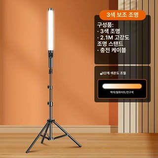 라이트 스틱 휴대용 LED 서치 써치 조명 충전식, 1개, 【3색 조명】필수 라이트 스틱 + 2m 라이트 스탠드