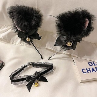 미미파티 코스프레 고양이 머리띠 초커 목걸이 세트, 블랙, 1세트