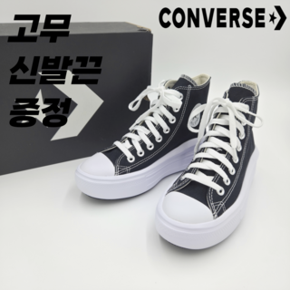 [백화점매장판]컨버스 Converse 공용 스니커즈 척테일러 올스타 무브 하이 BK 캔버스 키높이 플랫폼 블랙 + 고무 신발끈