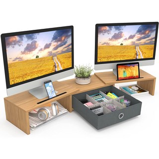 NLBUU 서랍형 모니터 받침대 높이 각도 조절 가능 듀얼 선반 모니터 거치대 1개, Natural