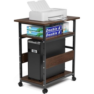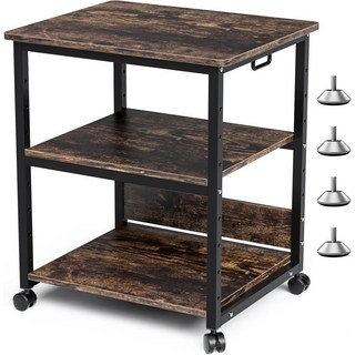 다기능 프린터 선반 받침대 복사기 거치대 이동식 선반 컴퓨터 본체 받침대 PC 이동식 선반 책상 복합기 수납장 사무실, 3단, 갈색