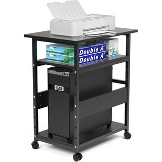 다기능 이동식 프린터 스탠드 사무실 책상 정리 수납카트 층가 높이 조절 PC 본체 받침대, 1개, 블랙