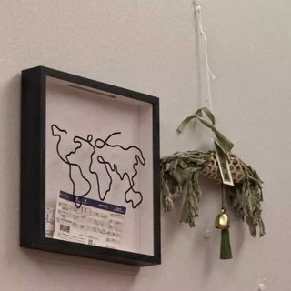 티켓 보관함 콘서트티켓 사진 액자 엽서 기념품 저금통 지도 상자 투명, 나무색 지도, 29x29cm 지도 모형 (두께 4.5cm), 1개