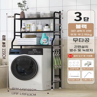 JS리빙 베란다 건조기 통돌이 드럼 세탁기 선반 3단 세탁실 정리 인테리어 스탠드 철제 방수 수납장 다용도 진열대 무타공 다이 / MD:PR-3T2536 / 72x26x153cm