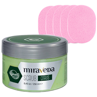 이탈왁스 미라베다 각질케어 바디 스크럽 2종 + 도톰한 해면 15T 5개, 1개, 250ml