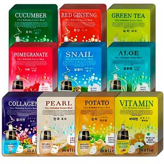 마리에 에센스 마스크팩 100매 콜라겐 달팽이 진주 알로에 석류 홍삼 로얄젤리 비타민 감자 녹차, 1개, 100개입