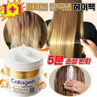 [미국기술] 1/1+1 콜라겐 단백질 트리트먼트 대용량 손상모복구 헤어팩 포장증정, 2개, 500ml