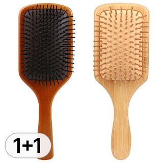 투데이리빙 1+1 두피 케어 쿠션 헤어 브러쉬 머리 볼륨 브러시 드라이 머리빗 나무빗, R98152A(브라운+라이트브라운, 2개입, 2개