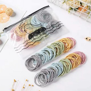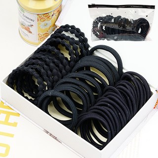 수스다 베이직 무매듭 고탄력 대용량 머리끈 100p + 파우치백 세트