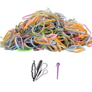 롤리트리 여아용 대용량 고무줄 머리끈 100g + 이지컷 고무줄 칼 + 휴대용 빗 세트