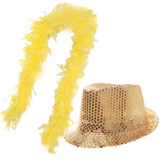 리빙다 깃털목도리+반짝이모자, 옐로우, 1세트