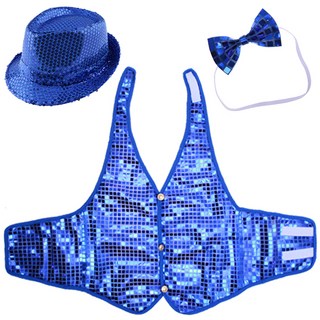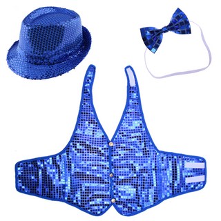 리빙다 반짝이모자 + 반짝이 조끼 M + 나비 넥타이 세트, 블루, 1세트