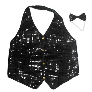 리빙다 반짝이모자 + 반짝이 조끼 XL + 나비 넥타이 세트, 블랙, 1세트