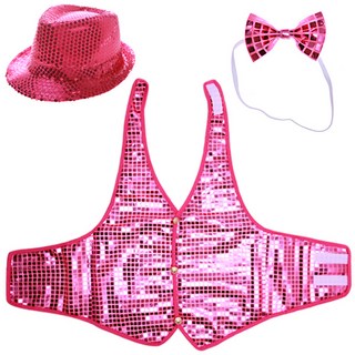 리빙다 반짝이모자 + 반짝이 조끼 XL + 나비 넥타이 세트, 핑크, 1세트