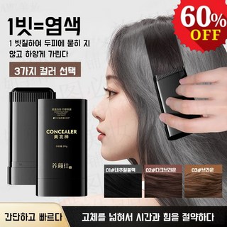 [1빗=염색] 방수 땀방지 흰머리 새치 커버 스틱 염색 헤어스틱 지워지지않는 헤어 커버 쿠션 워터프루프 흑채 정수리 새치 머리 부분 커버 스틱 바르는 헤어틴트 20g, 1개, 다크브라운