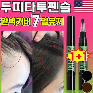 [BEST상품] 1/1+1 2in1 두피타투 헤어팡팡 헤어라인 쉐도우 새치커버 스틱 아이브로우 타투 그리모, 1개, 블랙